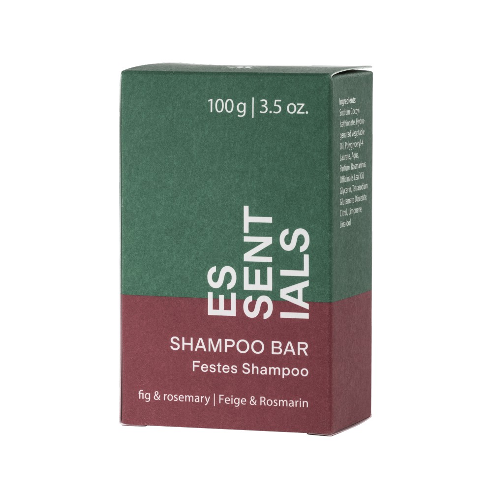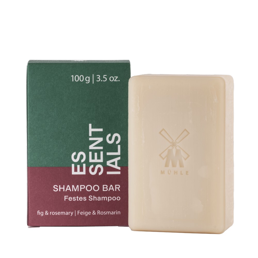 Mühle Essentials Shampoo bar är ett praktisk praktiskt schampo i fast form, lätt att ta med överallt, exempelvis på resan eller till gymmet. Har en frisk doft av fikon och rosmarin. Helt vegansk produkt. Innehåller ingen aluminum, inga färgämnen, mikroplaster, mineraloljor, palmolja.