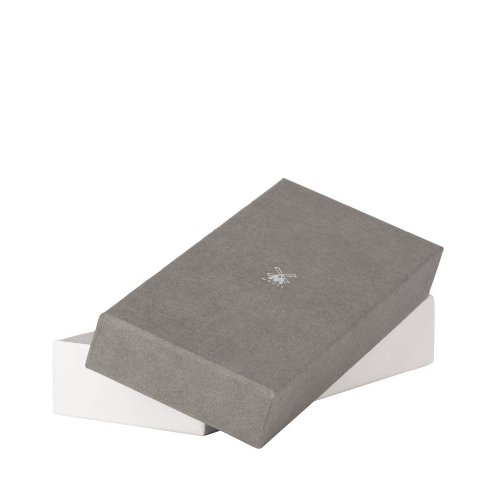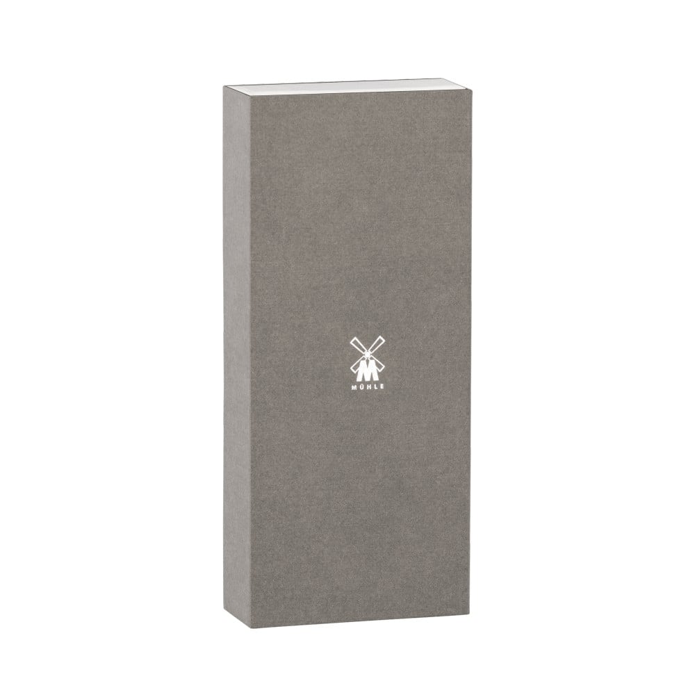 Säkerhetshyvel från serien Traditional, skapad av Mühle. Tillverkad helt och hållet av metall med handtag av svart räfflad aluminium för god komfort och lång hållbarhet. Den har en stängd kam vilket också ger god komfort och ökad säkerhet vid våtrakning.